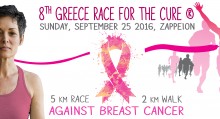 Ο Πανελλήνιος Σύλλογος Γυναικών με Καρκίνο Μαστού «Άλμα Ζωής», με την έγκριση της Αμερικανικής Οργάνωσης Susan G. Komen ® και σε συνεργασία με το Δήμο Αθηναίων και τον Οργανισμό Πολιτισμού, Αθλητισμού, και Νεολαίας Δήμου Αθηναίων (ΟΠΑΝΔΑ), σας προσκαλεί στο 8ο Greece Race for the Cure ® που θα πραγματοποιηθεί την Κυριακή 25 Σεπτεμβρίου στο Ζάππειο.